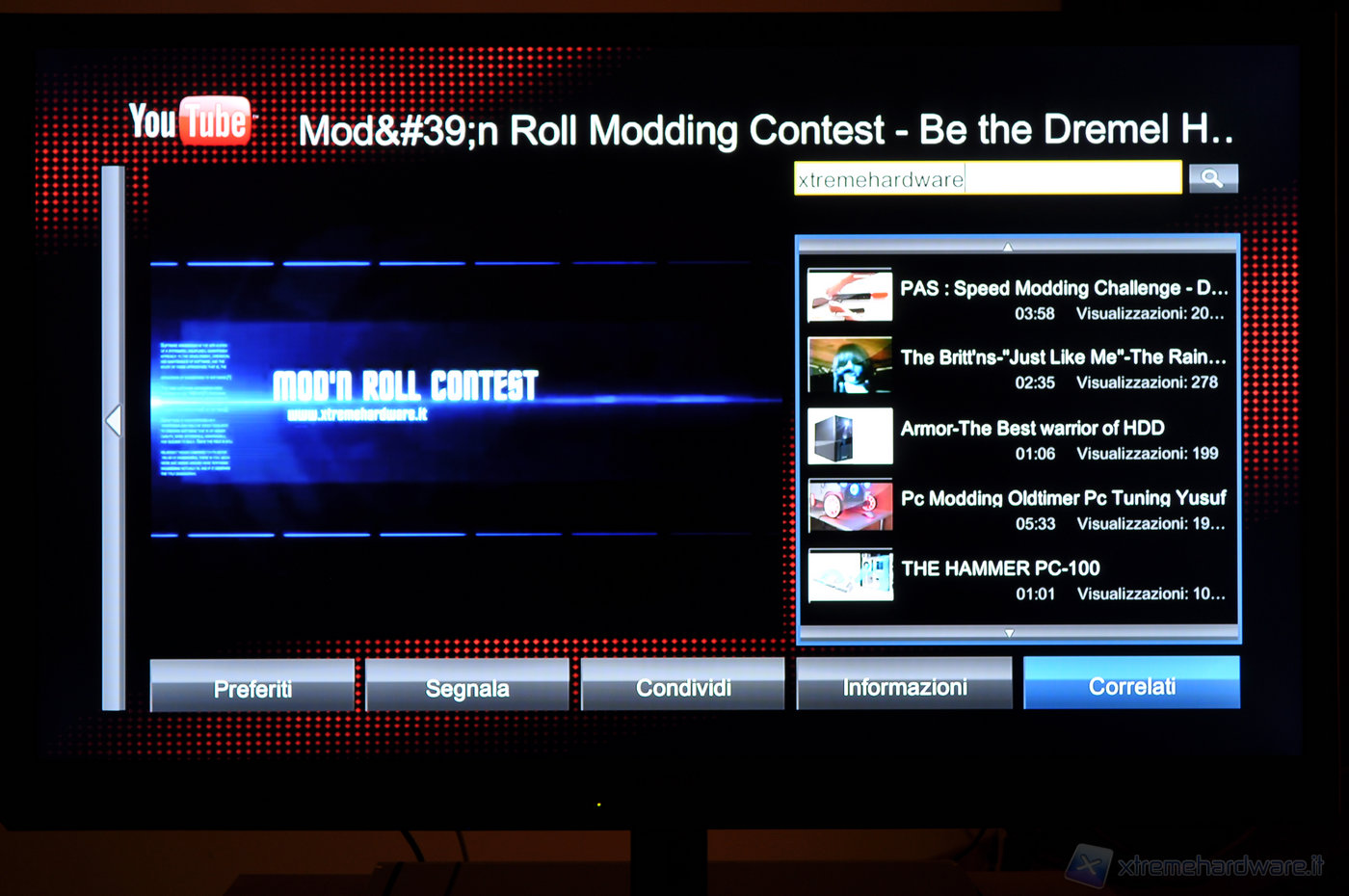 L’applicazione YouTube si presenta in modo simile alla versione per computer: sulla sinistra sono infatti presenti durante la riproduzione i video correlati. Attraverso il tasto zoom potremmo attivare la modalità schermo intero, da cui si potrà uscire attraverso il tasto back. La riproduzione è ovviamente fluidissima e il caricamento abbastanza rapido. Abbiamo riscontrato dei blocchi sistematici al primo accesso a questa applicazione, in questo caso sarà sufficiente tornare al menù precedente con il tasto back e selezionare di nuovo l’applicazione YouTube; un bug che probabilmente sarà risolto dai prossimi aggiornamenti del firmware.